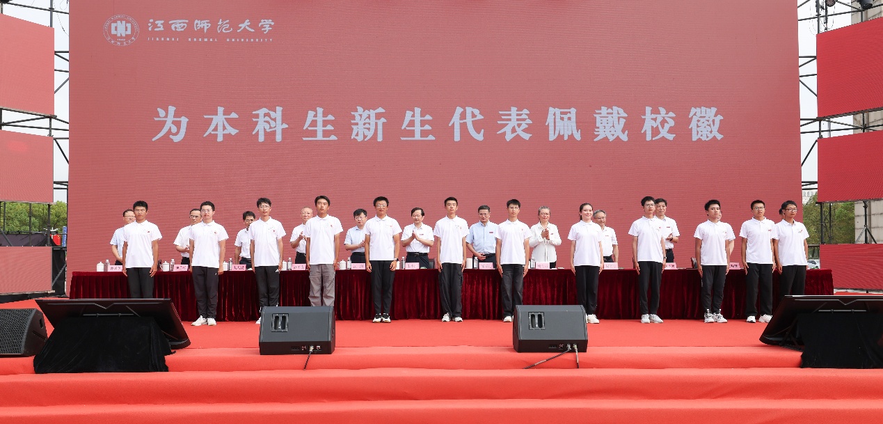 赣水含情迎新生,瑶湖生辉启新程。9月27日上午,学校2025级新生开学典礼在正大广场隆重举行。 校党委书记朱小理,校长陈芬儿院士,校领导汪洋、姚弋霞、舒平贵、周利生、刘利民、钟业喜,校党委常委曹泽华、王一喜出席。学校各党政管理部门、业务单位、相关附属机构负责人,各学院主要负责人、党委副书记、新生辅导员、新生助导员,以及2025级全体新同学共万余人参加。典礼由校党委常委、副校长董圣鸿主持。 正大广场新生方阵整齐就坐,精神饱满;印有“新程已启,逐梦前行”“大鹏一日同风起,扶摇直上九万里”等字样的条幅分列两侧,迎风飘扬。 上午8时30分,在军乐团铿锵的乐声中,全体师生齐唱国歌,注视着五星红旗冉冉升起,典礼庄严启幕。 仪式上,校领导分别为2025级本科生、硕士研究生和博士研究生代表佩戴校徽,勉励同学们践行“静思笃行、持中秉正”的校训精神,在课堂中学真知,在实践中悟真理,在服务社会中显担当,让师大卓越基因代代相传,生生不息。 陈芬儿以《不惧路遥笃行未来——做有情怀、有抱负、有作为的师大人》为题致辞,勉励同学们要有“胸怀家国”的情怀、“志存高远”的抱负、“脚踏实地”的作为,并深情寄语青年学子,用勤奋丈量生活轨迹,以踏实铺就学业与学术阶梯,将个人理想融入时代洪流,与学校“双一流”建设征程同向同行,奋楫争先,努力书写无愧于自己、无愧于师大、无愧于时代的青春年华! 1984届化学系校友、和美药业股份有限公司董事长张和胜,教师代表、新闻与传播学院教授、博士生导师袁爱清,新生代表公费师范生院2025级英语专业本科生熊雅文、地理与环境学院2025级地理学专业博士研究生年柏翰先后发言。 典礼在齐唱校歌的旋律中结束。