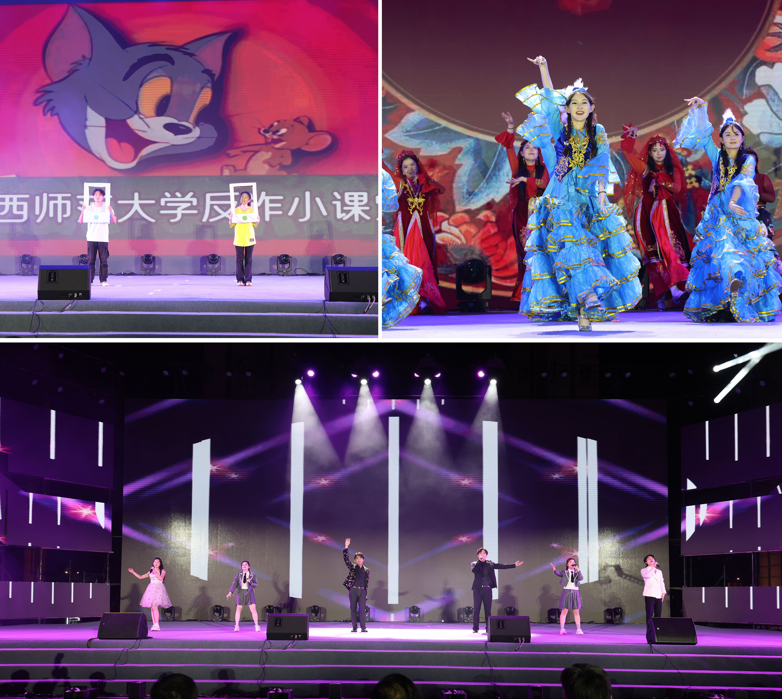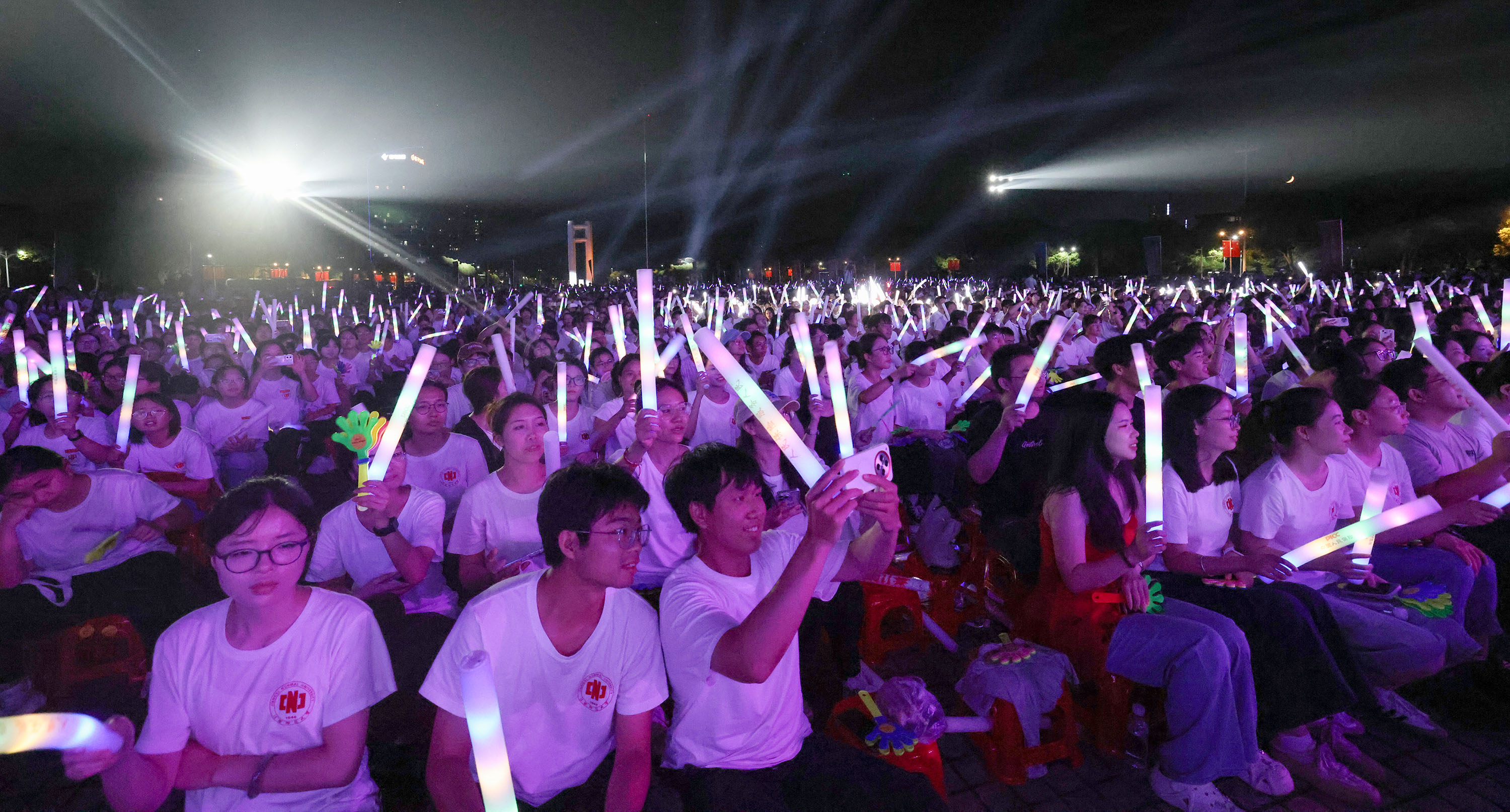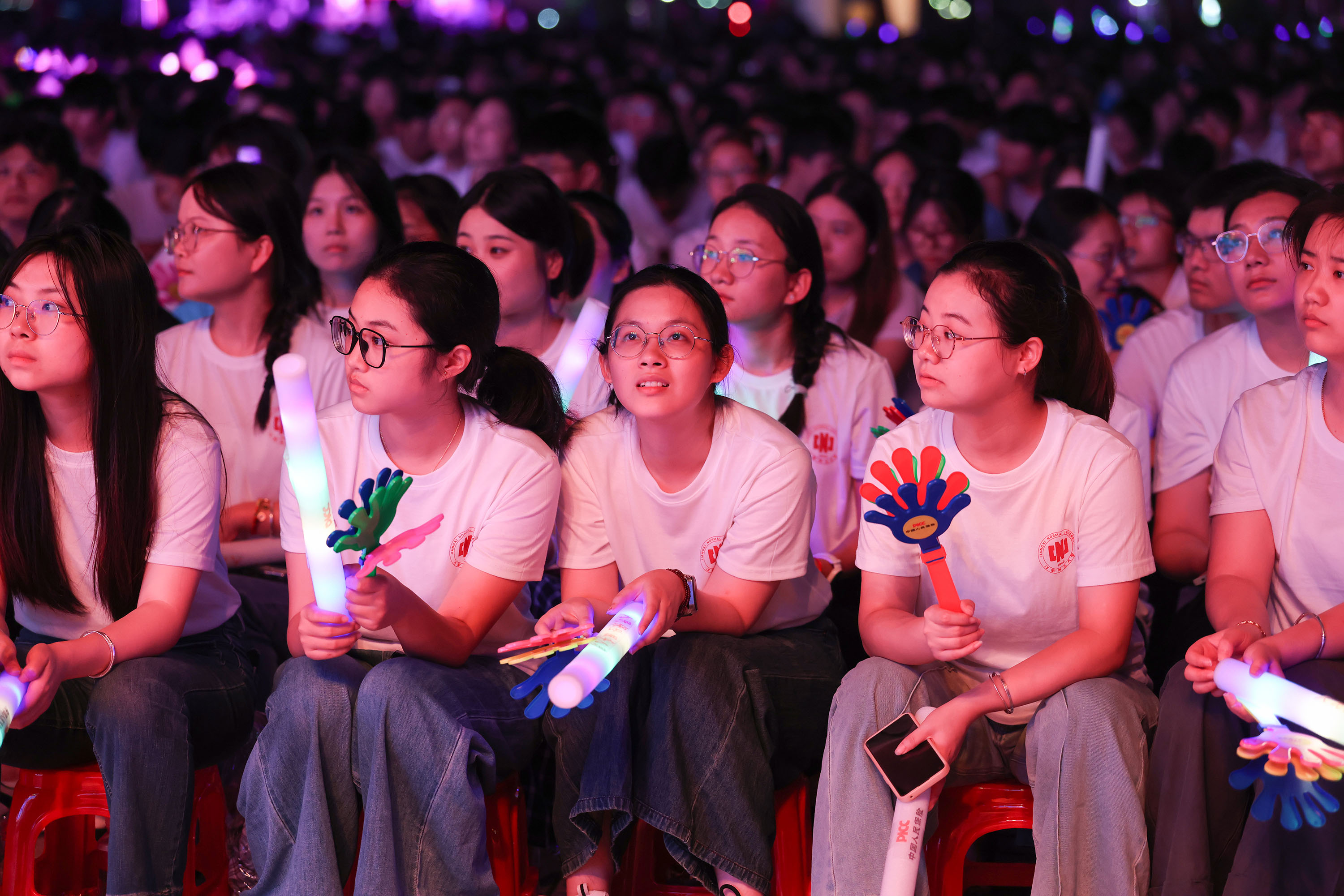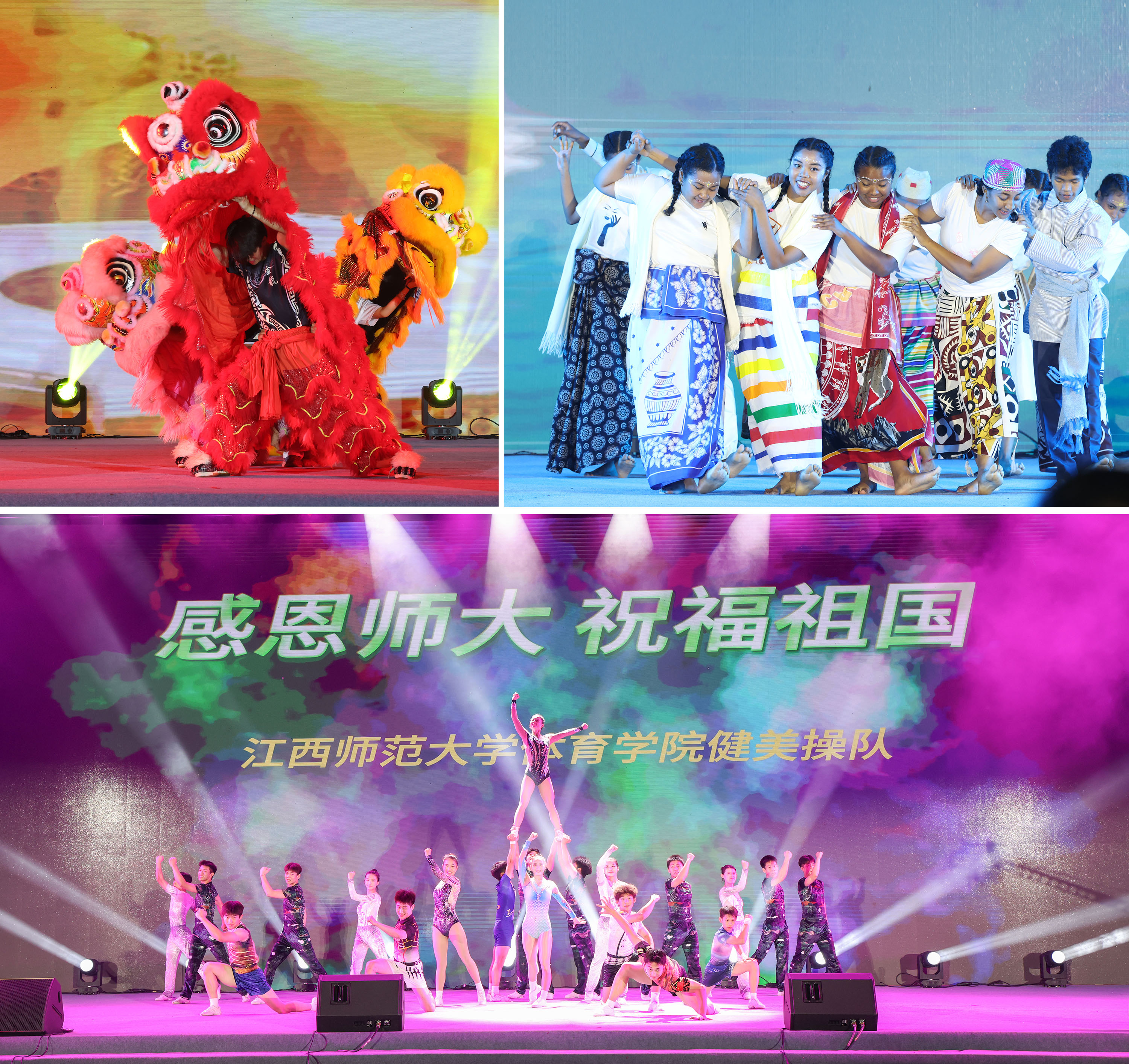 9月27日晚,江西师范大学“追光逐梦”2025年迎新生晚会在瑶湖校区正大广场隆重举行。晚会围绕“心之所向”“乘风破浪”“青春当燃”三个篇章展开,展现了师大人昂扬向上的精神风貌和薪火相传的家国情怀。 校党委书记朱小理,校长陈芬儿院士,校党委常委、副校长姚弋霞、周利生、刘利民、董圣鸿、钟业喜、杨卫军,校党委常委、宣传部部长王一喜,中国联通江西省公司党委书记、总经理张伟,中国人民财产保险股份有限公司南昌市分公司党委书记、总经理朱建平出席。学校各职能部门、中国联通江西省公司和中国人民财产保险股份有限公司南昌市分公司负责人,各学院教职工代表、全体2025级新生1万余人欢聚一堂,共享这场青春洋溢的视听盛宴。 晚会在恢弘激昂的交响乐《丰收》中拉开帷幕。男声独唱《黄河颂》、琵琶演奏与舞蹈《情满书香园》、独唱《十送红军》与朗诵《读中国》、萨克斯六重奏《红色童谣》等节目,激昂的旋律、深情的朗诵、悠扬的器乐,展现了师大学子胸怀家国、追寻理想的初心与担当;传统文化节目《风起云涌》融合武术、变脸与舞狮,马达加斯加留学生舞蹈《闪耀的我们》,学校健美操队《舞动青春 荣耀师大》和少数民族舞蹈《石榴凝情·舞颂同心》等节目,活力四射、多元交融,展现了师大学子传承民族文化、加强各民族交往交融的胸怀与担当;流行歌曲串烧、情景剧《反诈小课堂》、现代舞《迎风起跑》、《青春向祖国告白》、歌舞《灯火里的中国》,寓教于乐、韵律悠长、燃动全场,展现了师大学子蓬勃向上的青春动能。 晚会特别设置“追光故事讲述”环节。我校蓝天环保社团和第二十三届研究生支教团成员、圆满完成纪念中国人民抗日战争暨世界反法西斯战争胜利80周年阅兵任务返校的沈芯同学,以及六位新生代表动情分享了他们“筑梦追梦”践行青春誓言和“遇见师大”的憧憬与梦想。 晚会在全体师生激昂齐唱《歌唱祖国》的雄壮歌声中达到高潮,为整场晚会画上圆满句号。 “看到留学生代表跳起《闪耀的我们》,我全身的血液都在沸腾,自豪感油然而生!”来自马达加斯加的留学生罗玛娜难掩激动,“这是我第一次近距离接触中国少数民族舞蹈,多彩的服饰、灵动的舞姿很奇妙,每一个动作都让我觉得新鲜又震撼。”来自新闻与传播学院的2025级新生顾司晨说,“迎新晚会上,最让我心生敬畏的是学长学姐们的榜样故事——他们远赴偏远地区播撒知识火种,在国家大型活动上为祖国和学校争光。我将以他们为标杆,在未来的时光里不断充实自己,努力成长为有理想、有本领、有担当的青年。” |