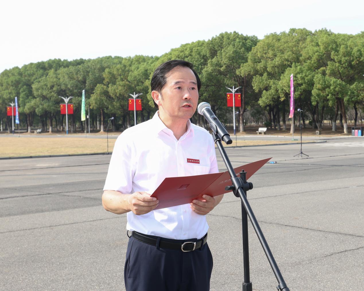 升旗礼毕,校党委书记朱小理讲话。他指出,站在新中国成立76周年和抗战胜利80周年的历史交汇点,青年学子要胸怀“国之大者”,立“强国有我”之志;要勤学善思笃行,成可堪大用之才;要矢志艰苦奋斗,担民族复兴之任。他强调,全体师大人要以“赶考”的心态、“奋进”的姿态,努力在教育强国、教育强省建设征程中贡献师大力量,彰显师大担当。 来自文学院、附属中学和附属小学的大中小学生代表依次发言。 最后,全场师生齐声高唱《我和我的祖国》,悠扬深情的旋律在广场上空回荡,共同祝愿伟大祖国繁荣昌盛、国泰民安。 |