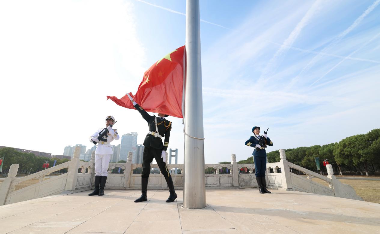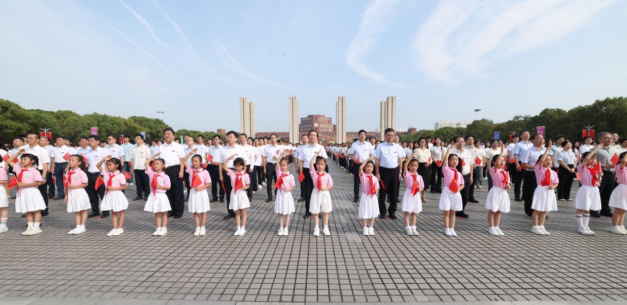 红旗猎猎映晨光,爱国情怀满校园。10月1日上午,为庆祝中华人民共和国成立76周年,我校在瑶湖校区正大广场举行升国旗仪式。 校领导朱小理、陈芬儿、汪洋、周利生、刘利民、董圣鸿、钟业喜,校党委常委郭亮亮、王一喜出席,学校老领导代表邹道文、徐耀耀、丁晖,党政管理部门、业务单位和各学院主要负责人,以及本科生、研究生代表,附属中学、附属小学师生代表等参加升国旗仪式,共同见证这一庄严时刻。仪式由校党委副书记汪洋主持。 上午9时整,升旗仪式正式开始。