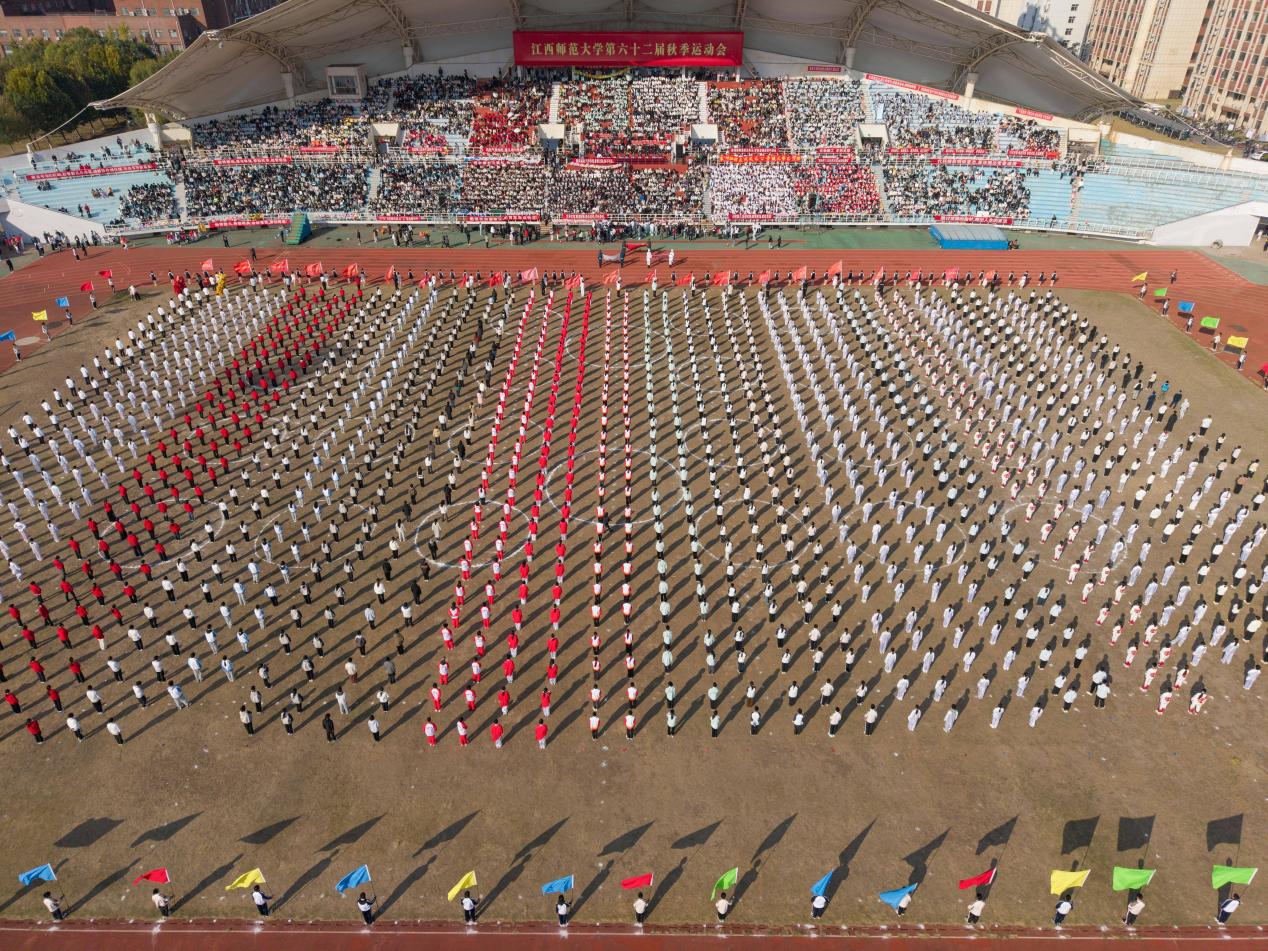 学院代表队入场仪式后,进行了千人八段锦、大型团体操和舞龙舞狮、川剧变脸等表演,尽显同学们的青春光彩,诠释了师大学子昂扬向上的精神风貌。