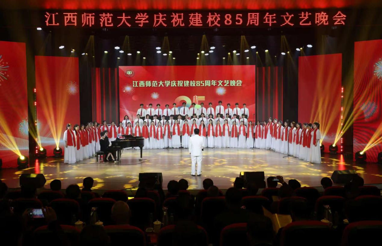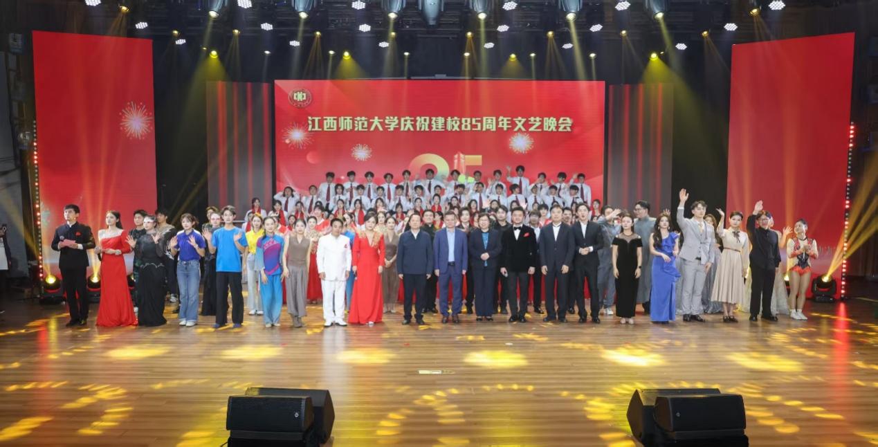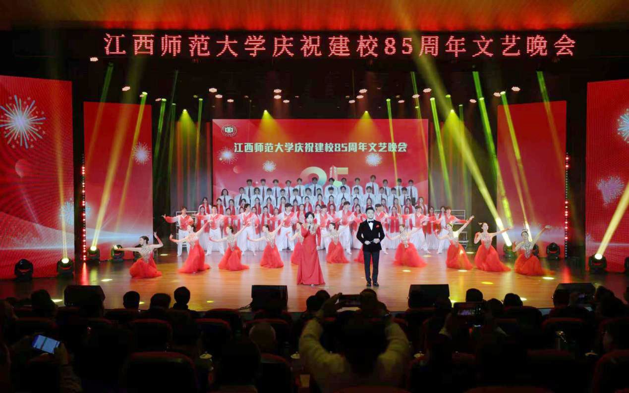 晚会在气势恢宏的交响乐《英雄之城1927》中震撼开场,激昂的旋律奏响了师大人传承革命精神的不朽乐章;女声独唱《红旗飘扬》,抒发了师大人热爱祖国的赤子情怀;舞蹈《苏区母亲》、情景剧《八子参军》和歌剧《八一起义》选段,再现了革命年代的无私大爱和崇高革命精神;三人舞《三晖垄上》,勾勒出了人民质朴的劳动图景;朗诵《大先生》,道出了师者风范和人民教师的使命追求;群舞《“鲲”之向往》《奔跑吧,青春》,展现了师大人追求卓越的远大志向;《校园流行歌曲串烧》和歌曲《我的梦》、健美操《舞动青春 荣耀师大》以跃动节拍,绽放青春荣耀;合唱《我的深情为你守候》《爱永在》,用深情演唱倾诉师大人对母校的眷恋热爱……,晚会在全体师生齐声高唱校歌中画上圆满句号。 八十五载风雨兼程,八十五载薪火相传。整场文艺晚会,我校师生以精彩的节目编排和优异的现场表现,展现了学校深厚的历史底蕴和昂扬的精神风貌。