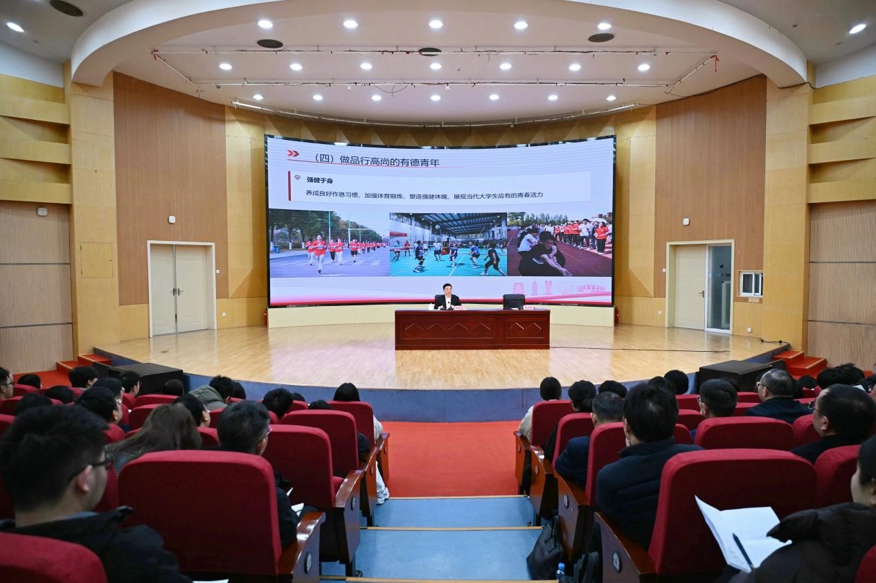 叶建春围绕经济增长、科技创新、产业发展、生态建设、民生保障、安全能力等领域,运用具体案例和翔实数据,梳理全国和江西两个层面取得的重大成就。他说,党和国家事业之所以能够战胜一个又一个艰难险阻,取得一项又一项发展成就,根本在于习近平总书记领航掌舵、在于习近平新时代中国特色社会主义思想科学指引。前行路上一定还会有困难挑战,但这挡不住我们奋进的步伐。希望同学们增强志气骨气底气,更加自信自立自强,坚定听党话、感党恩、跟党走,努力当好中国式现代化建设的参与者、贡献者。 叶建春着重就加快构建体现江西特色和优势的现代化产业体系、一体推进教育科技人才发展两个话题对省委“十五五”规划建议进行了阐释。他说,产业发展靠科技,科技创新靠人才,人才培养靠教育。“十五五”时期正是同学们走出大学校园、施展人生抱负的阶段,希望大家倍加珍惜时光,系统学习专业知识、提升专业本领,更多关注江西、扎根江西、建设江西。希望青年科技工作者围绕实施“1269”行动计划和未来产业发展需求,推动更多优质科技成果从论文走进车间、从实验室走向生产线,为推动科技创新和产业创新深度融合贡献青春力量。 叶建春叮嘱青年学生从感恩父母、诚信待人、避免沉溺游戏、注重身心健康等具体事情做起,有意识地自我磨砺,做胸怀家国、品行高尚、拼搏进取的人。他强调,江西师范大学承担着推动我省教师教育高质量发展的重任,要高度重视思政课建设和师德师风涵养,引导教师做好言传身教,既当好传播知识、传播思想、传播真理的“经师”,更当好塑造灵魂、塑造生命、塑造新人的“人师”。 朱小理在主持报告会时表示,叶建春省长深刻洞察时代大势,精准把脉省情发展,以宏阔的战略视野和深厚的为民情怀,全面回顾了“十四五”时期全国、全省经济社会发展取得的辉煌成就,全面描绘了未来5年国家发展的宏伟蓝图与我省发展的美好前景,为广大青年精准把握时代发展大势、明确自身职责使命,提供了重要指导。他希望同学们要深学细悟,把握时代方位,在领会“国之大者”中筑牢信仰之基。要知行合一,练就过硬本领,在响应“强省之责”中展现青年作为。要勇毅前行,担当复兴大任,在践行“时代之任”中书写无悔青春。 |