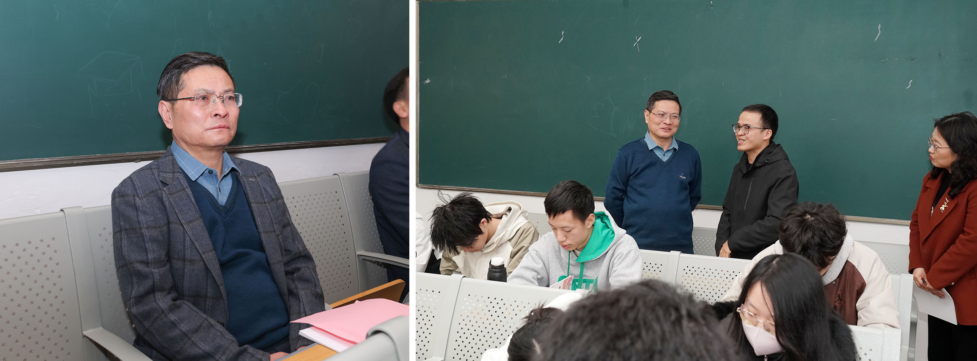其他学校党政班子成员也分别走进联系学院教师课堂,深入了解一线教学实况。课后,学校领导与授课教师、学院负责人和学生进行交流,围绕如何改革创新教学内容、教学方法及利用AI技术赋能师生深度互动等方面进行了探讨。